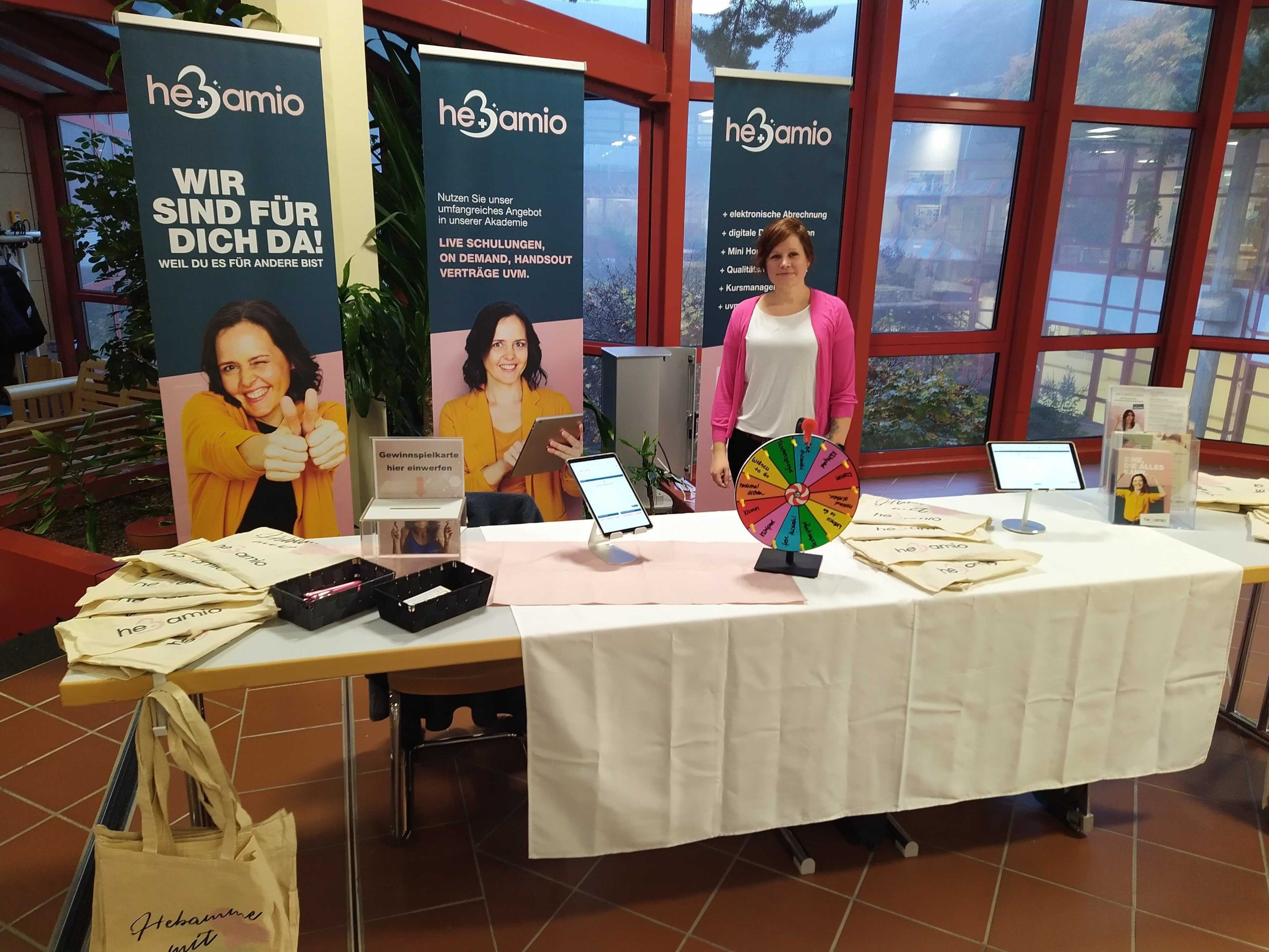 Die nächsten interessierten Kolleginnen kamen auf mich zu, nutzten fleißig die Tablets, um Hebamio und seine Funktionen selbst kennenzulernen, erfreuten sich über meine Berichte aus dem Arbeitsalltag mit Hebamio. Und drehten natürlich auch eine Runde am Glücksrad, um sich ein kleines Präsent mitzunehmen.